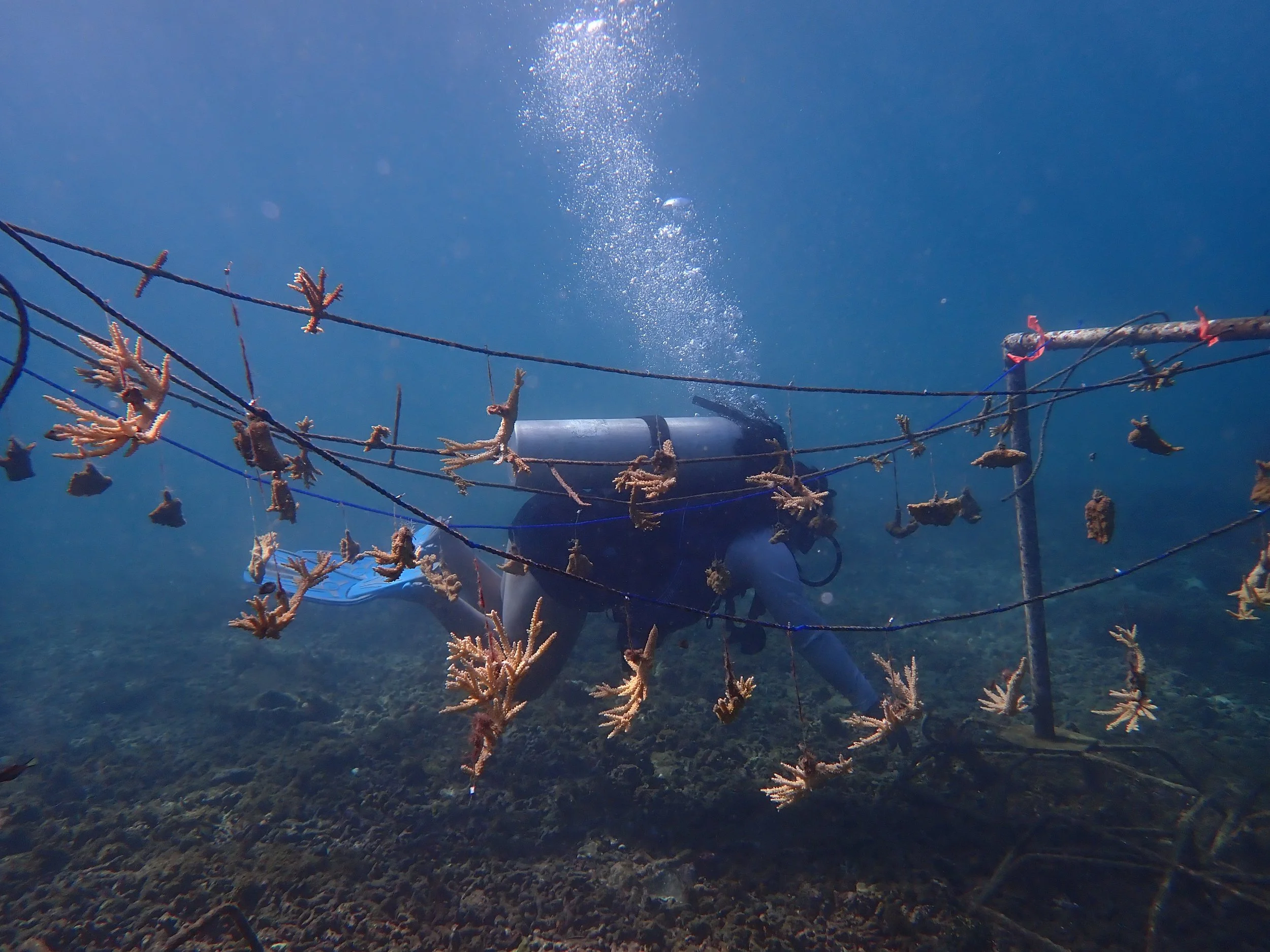 Once grown, healthy corals are transplanted back onto degraded reefs to boost recovery and biodiversity.